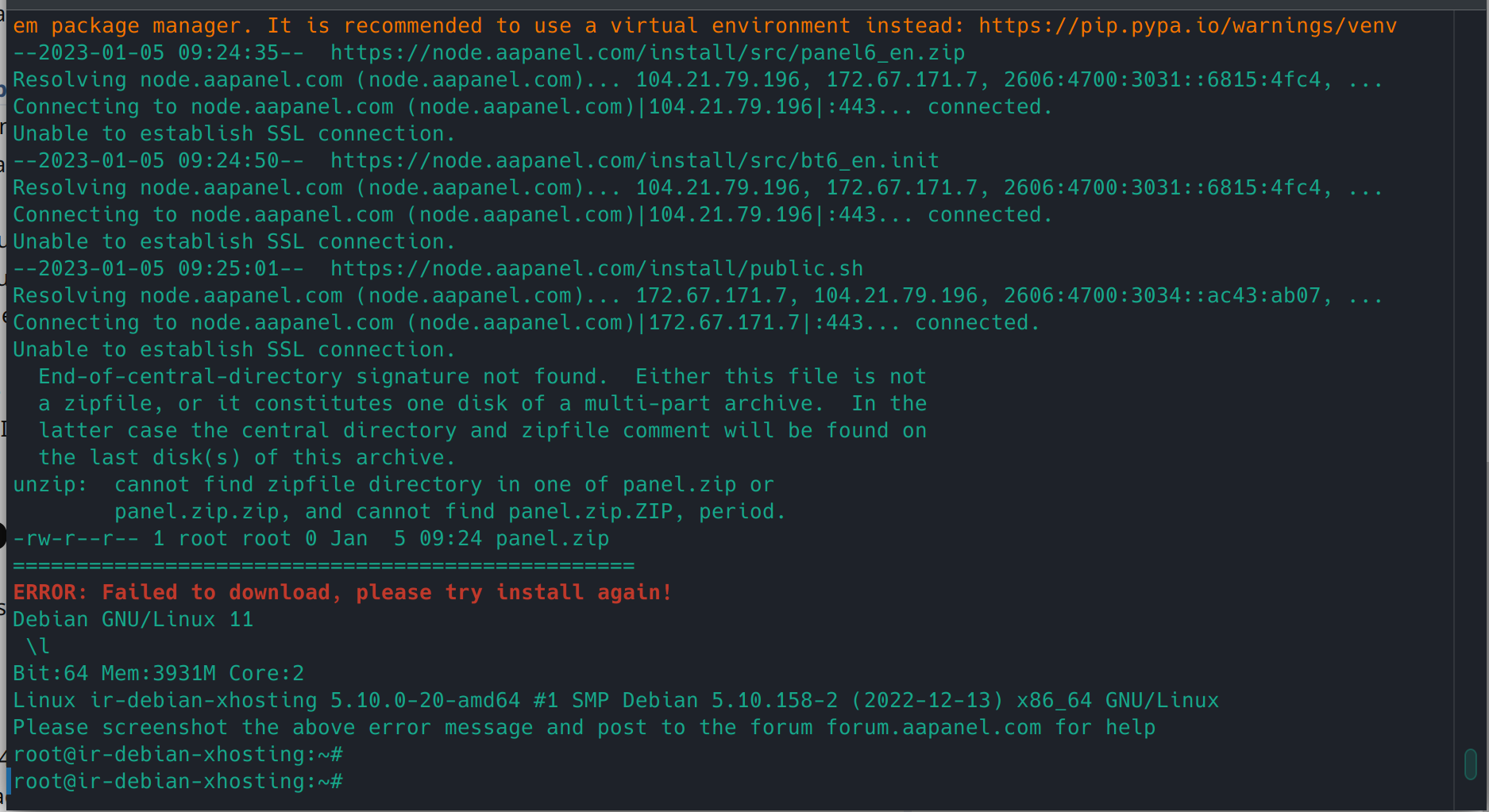 I have a problem installing aapanel on Debian 11