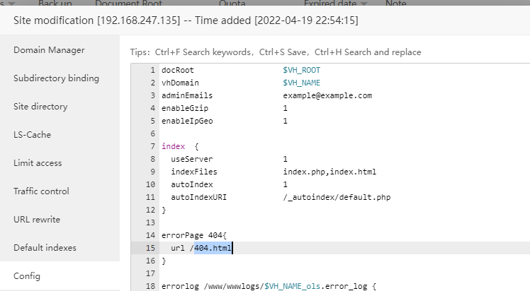 aaPanel_Kern aaP_fernandodacruz87 Hello, you can add configuration 404 to your site's configuration. Customize the 404.html file in the site data directory errorPage 404{ url /404.html }