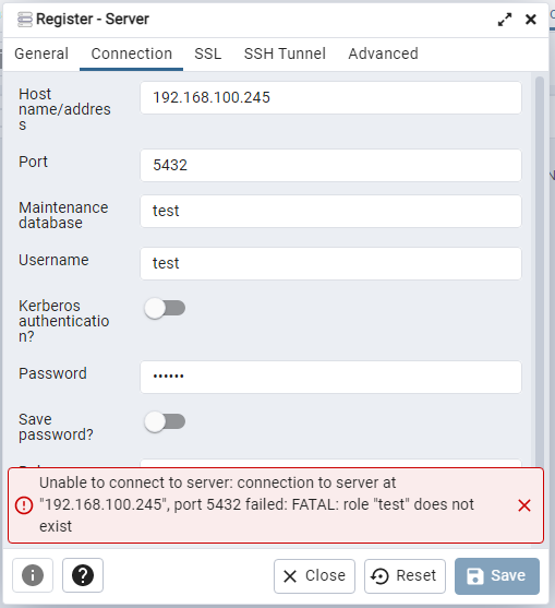 The postgres user works, but any other does not.