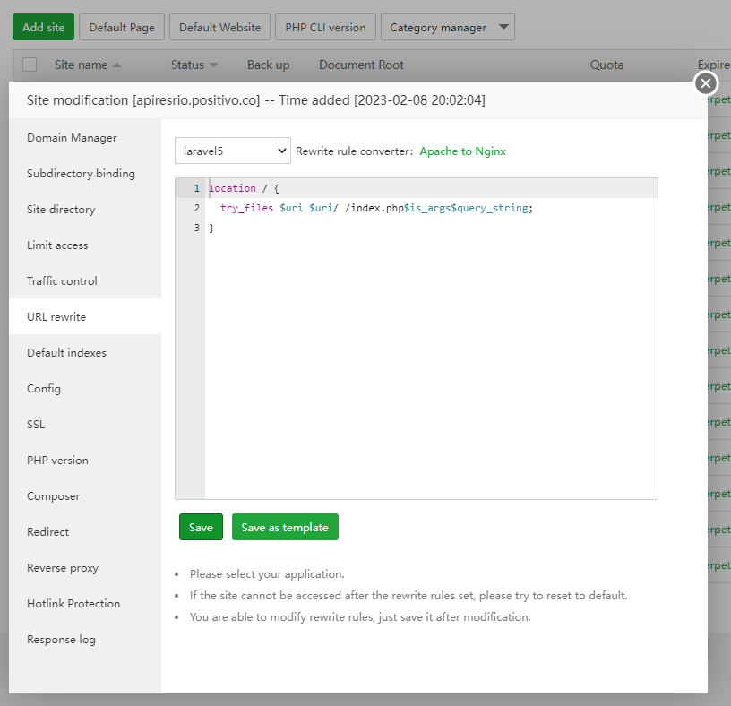 2023/02/09 00:01:20 [error] 1434437#0: *159897 "/www/wwwroot/apiresrio.positivo.co/v2/index.php" is not found (2: No such file or directory), client: 38.242.128.76, server: apiresrio.positivo.co, request: "GET /v2/ HTTP/1.1", host: "54.227.80.22:443"