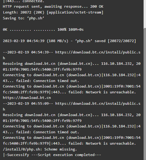 Resolving download.bt.cn (download.bt.cn)... 116.10.184.219, 2001:19f0:7001:54fc:5400:2ff:fe9b:97f9