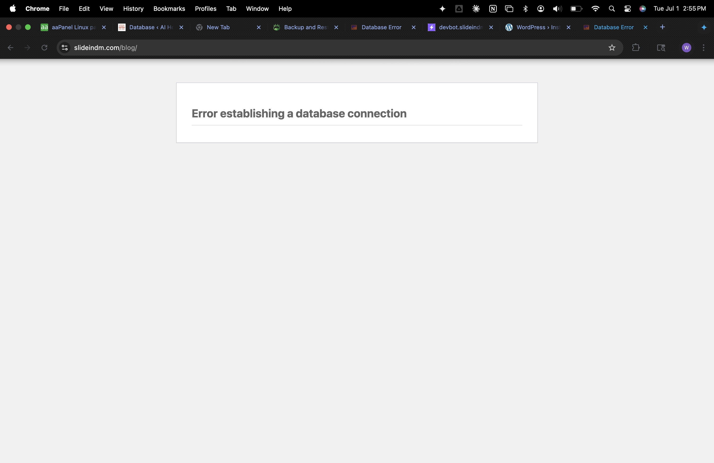 I am running 4 WP Sites and i have no idea of how they broke because 3 of them still seemed to be 'running' because the homepage was displayed. but if i try to login or click internal pages (ie: about us, contact us, blog etc) it would give me the above 'Database Connection error'