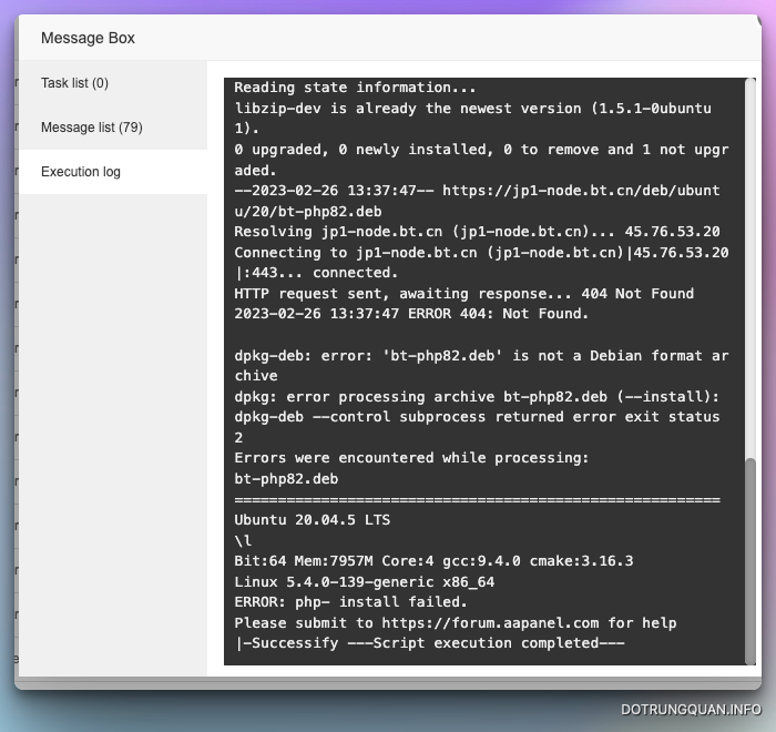 I do install PHP 8.2 from AAPANEL control panel but get little error. Please support me