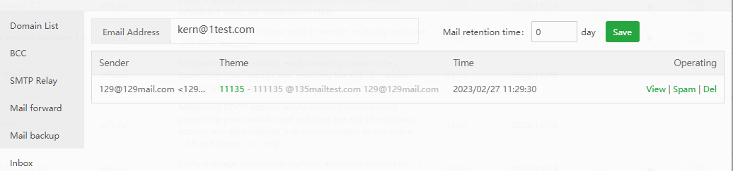 - The DNS mailserver for the ttmail.com domain is OK (according to the directions on aapanel), and the mailserver is functioning properly
