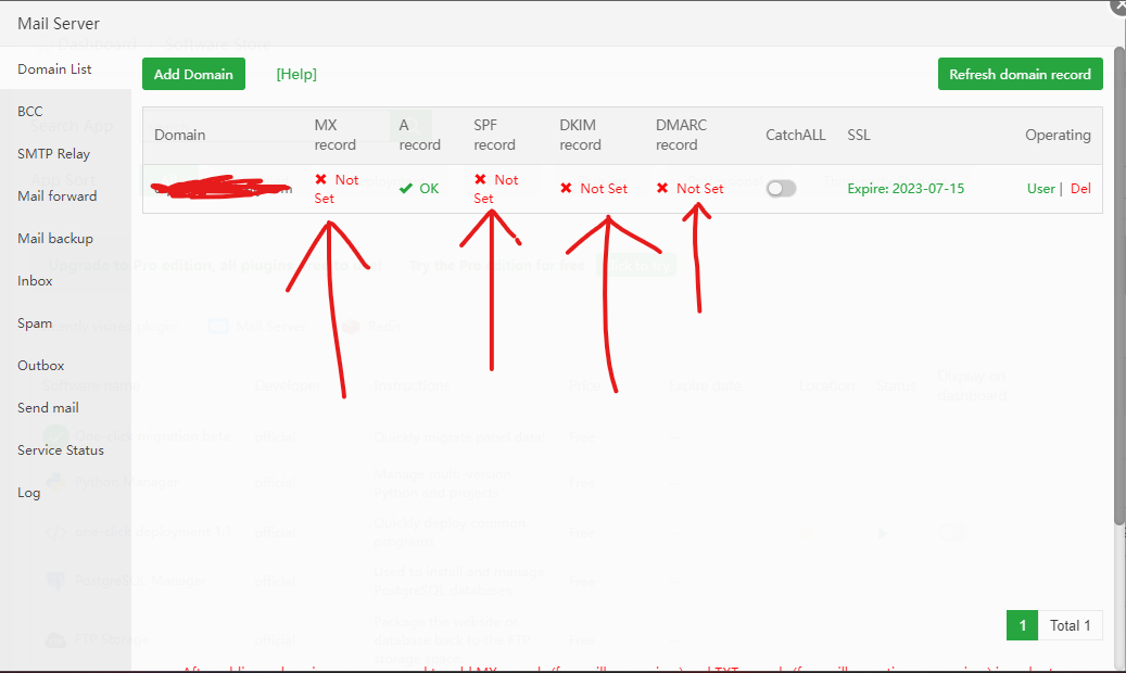 aaPanel_Kern aaP_pkqasim773 Hello, the proxy cannot be enabled in the mail record, use this website to check whether it is normal? https://dnschecker.org/all-dns-records-of-domain.php