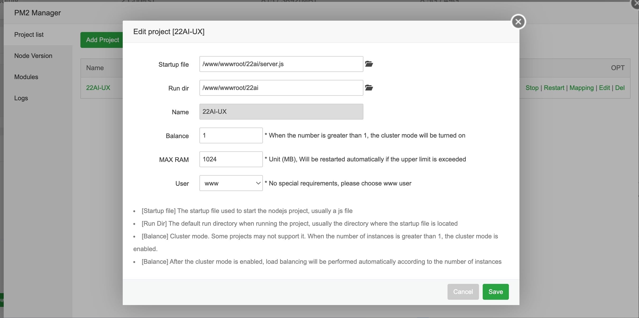 Thank you for the reply, aaP_hareeshnarayan1982. I managed to finally get the project up and running, part of the problem was outdated an nodejs and npm. I reinstall the Cloud server with Ubuntu 22, reinstall AAPanel and PM2 Manager.