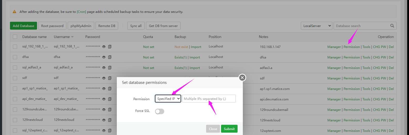 The database added by the panel can only be accessed by this server by default