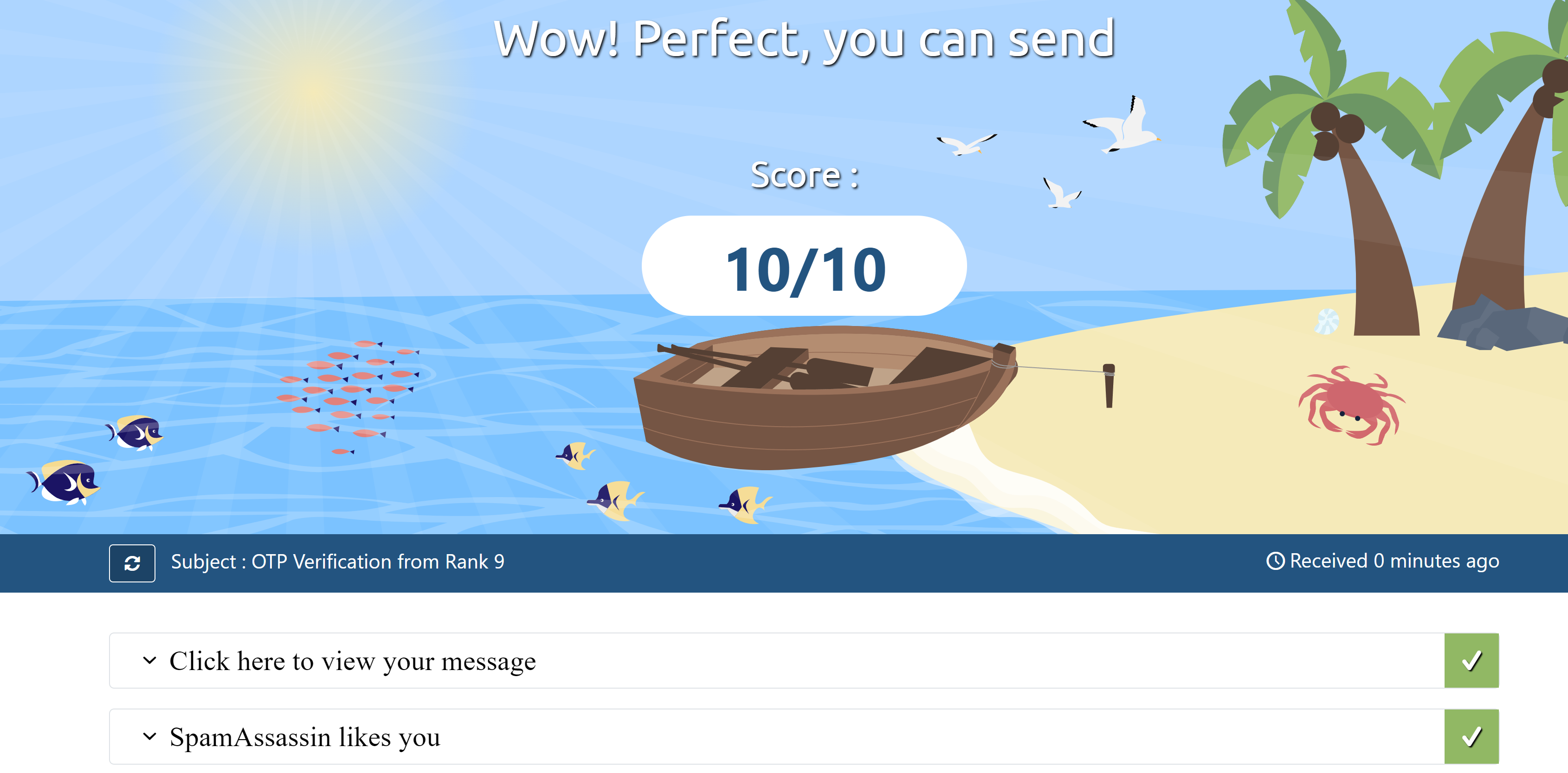2023-05-06 08:02:22 #133274(rspamd_proxy) <d3539b>; proxy; rspamd_task_write_log: id: d6dc03c1-562e-dd01-6503-ff2067e354d3@whatsbotpro.com, qid: <1C05BE8276>, ip: 192.71.151.120, user: admin@whatsbotpro.com, from: admin@whatsbotpro.com, (default: F (no action): [-0.10/15.00] [MIME_GOOD(-0.10){multipart/alternative;text/plain;},ARC_NA(0.00){},ASN(0.00){asn:49981, ipnet:192.71.151.0/24, country:NL;},DKIM_SIGNED(0.00){whatsbotpro.com:s=default;},FROM_EQ_ENVFROM(0.00){},FROM_HAS_DN(0.00){},MID_RHS_MATCH_FROM(0.00){},MIME_TRACE(0.00){0:+;1:+;2:~;},RCPT_COUNT_ONE(0.00){1;},RCVD_COUNT_ZERO(0.00){0;},TO_DN_NONE(0.00){},TO_MATCH_ENVRCPT_ALL(0.00){}]), len: 626, time: 127.587ms, dns req: 1, digest: <673b8cd19e9cb59123a8ca80fc7e9cf8>, rcpts: test-ozrivizq9@srv1.mail-tester.com, mime_rcpts: test-ozrivizq9@srv1.mail-tester.com