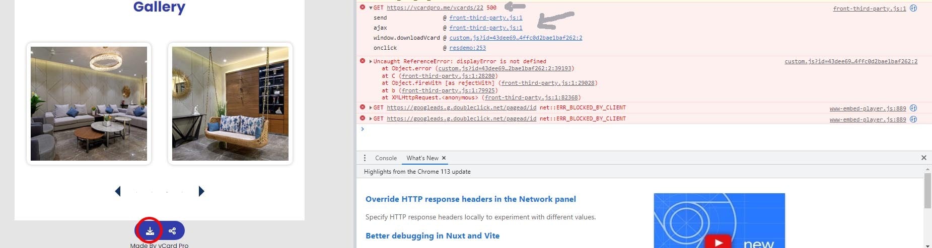 also when I click the floating download button, it throws 500 error in console window and nothing happens visually, which you can also see, that worked perfectly on my shared hosting but not here.