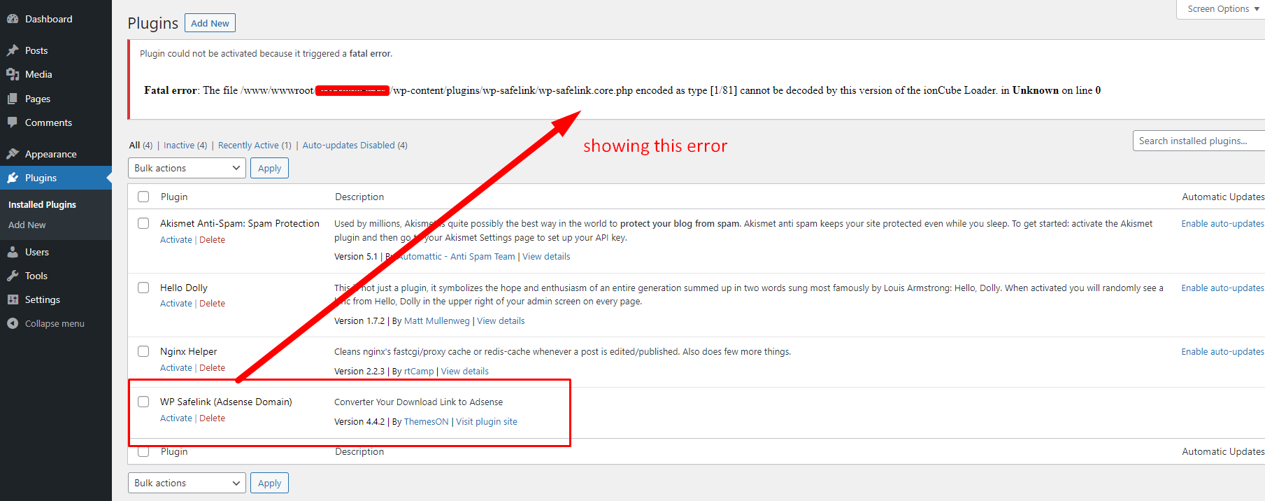 Fatal error: The file /www/wwwroot/maxxmoney.xyz/wp-content/plugins/wp-safelink/wp-safelink.core.php encoded as type [1/81] cannot be decoded by this version of the ionCube Loader. in Unknown on line 0