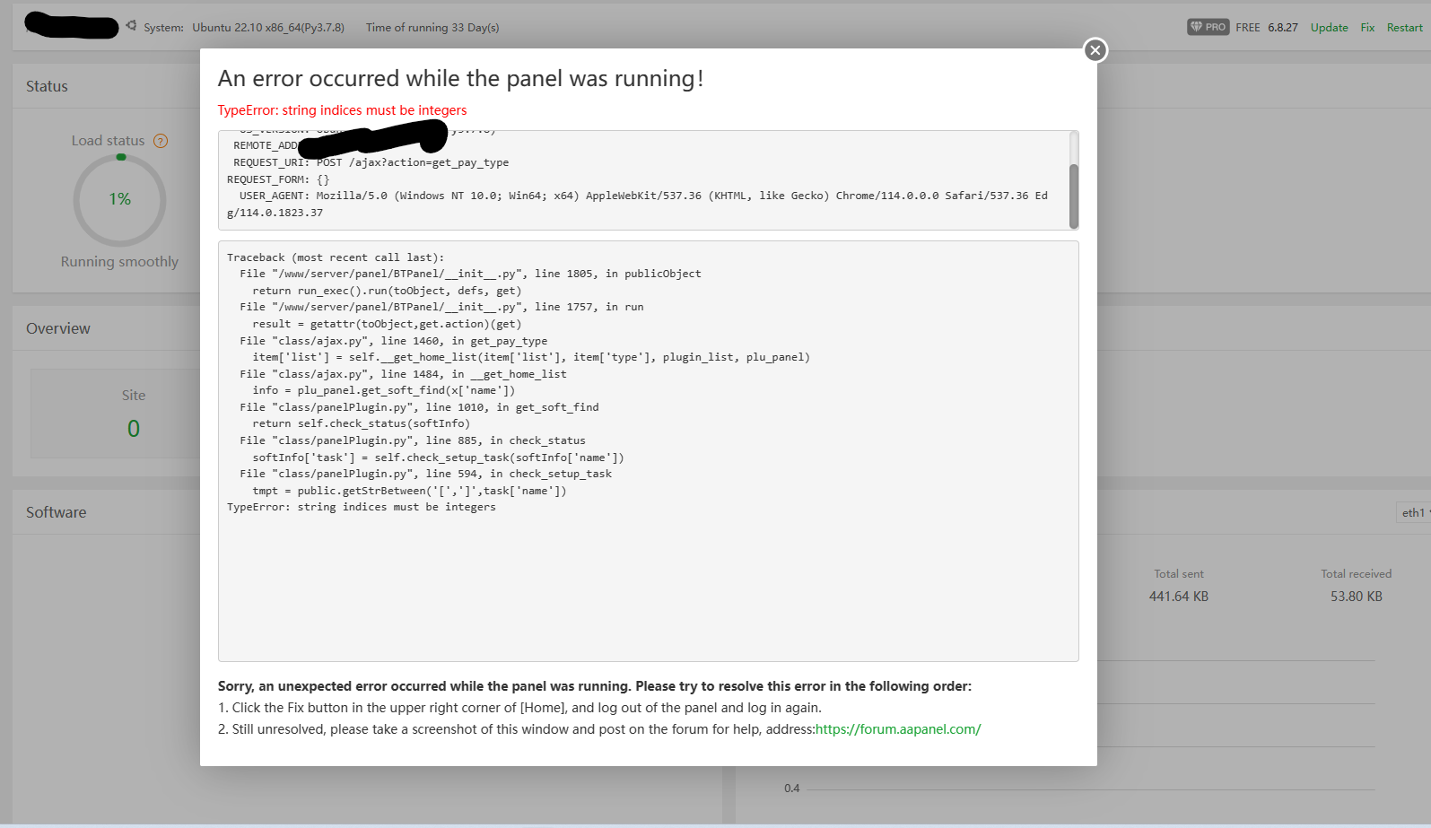 aaP_pinkth3floyd I deleted site contents when apache waf and tamper protection were on. Now my panel gives this error