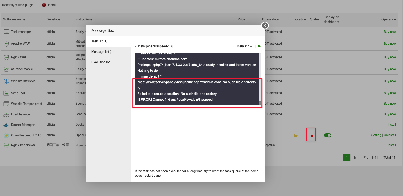 [ERROR] Cannot find /usr/local/lsws/bin/litespeed
