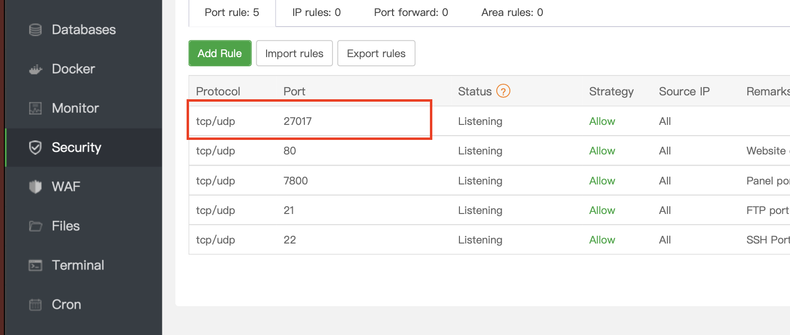 aaP_neryaelul I fix this issue need to change from localhost (127.0.0.1) to 0.0.0.0 from app settings of course, open your MongoDB port in security my port is the default (27017)