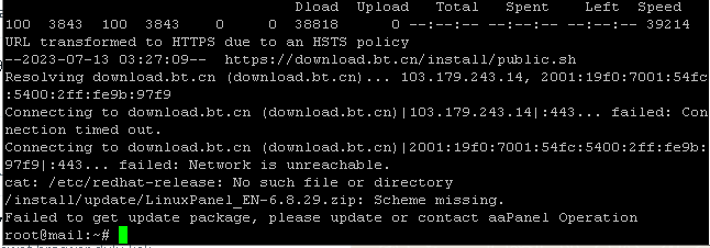 aaPanel_Kern Use the ssh tool to execute the command: cd /tmp/ wget https://node.aapanel.com/install/update6_en.sh sed -i 's/download.bt.cn/node.aapanel.com/g' update6_en.sh bash update6_en.sh YagamiCell