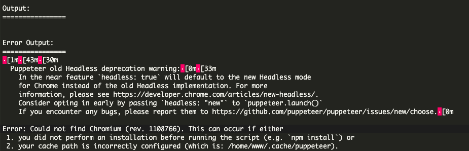 aaP_khairul_bestweb aaPanel_Kern Right now, i try to install pupeteer and chromium manually. But somehow when i try to run the code, it said that Chromium is not found I couldn't see any .cache folders inside www. is it something need to create?
