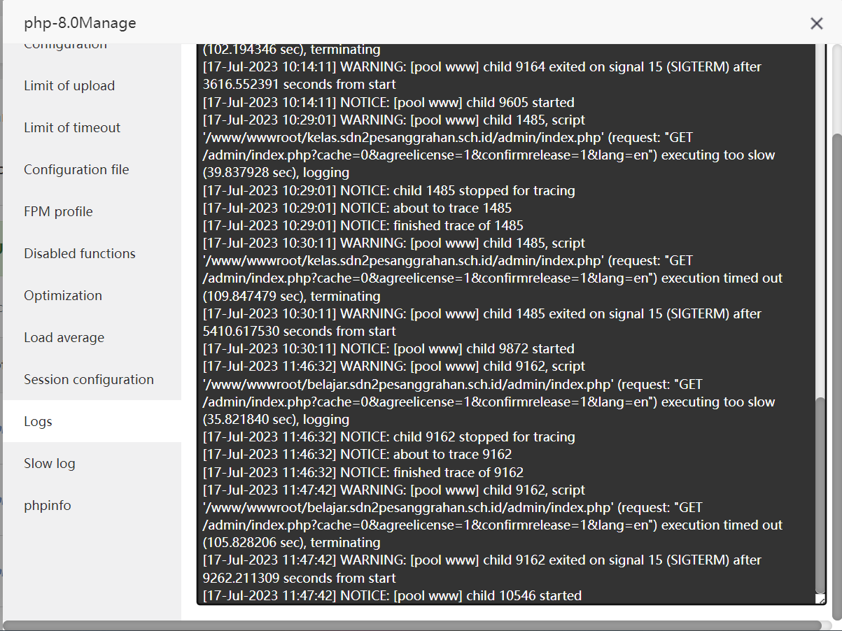 The following is a screenshot of the PHP 8.0 logs