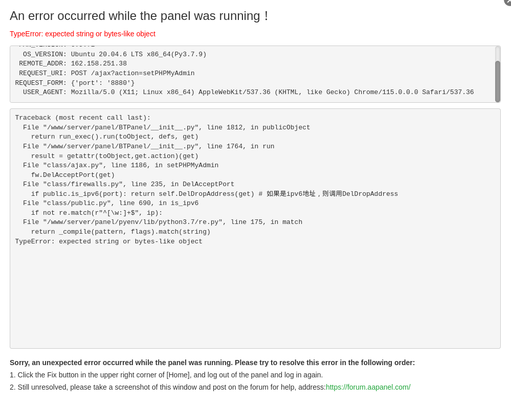 I am getting the following error while changing port in phpmyadmin. I took the panel to beta version and the problem was not solved. I fixed the panel, the problem is still not solved. I reset openlitespeed,mysql,php and the problem was not solved.