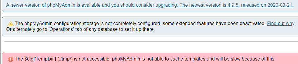 Klaud i got error on on phpmyadmin: The $cfg['TempDir'] (./tmp/) is not accessible. phpMyAdmin is not able to cache templates and will be slow because of this. anyone know how to fix?