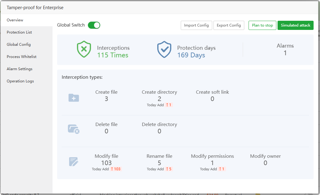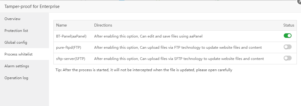 Global switch, if closed, all protected list directories will lose protection