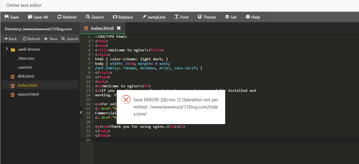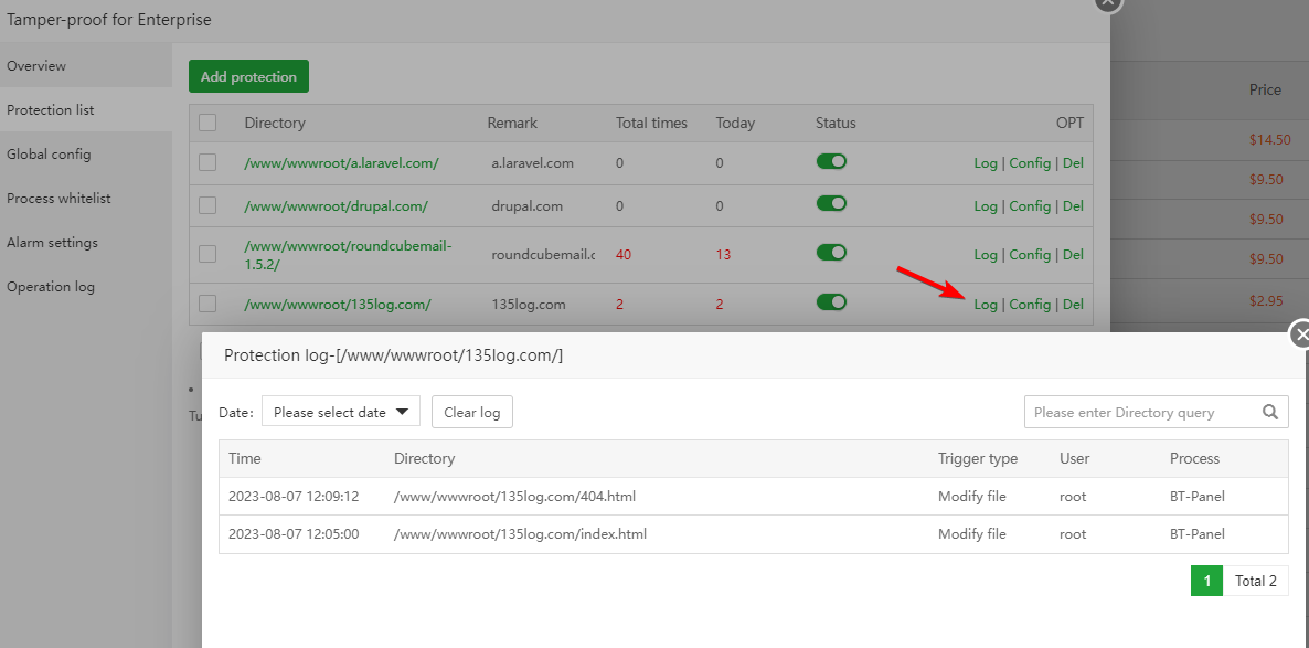 See that /www/wwwroot/135log.com/ has been protected twice
