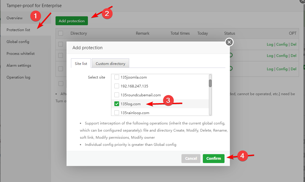 See the operations on Tamper-proof for Enterprise, such as adding a whitelist, adding a protection list, switching, and a series of operations