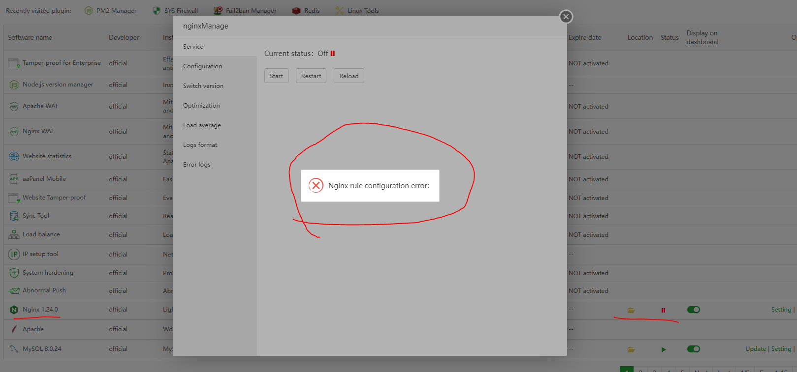 here log reinstall nginx 1.24