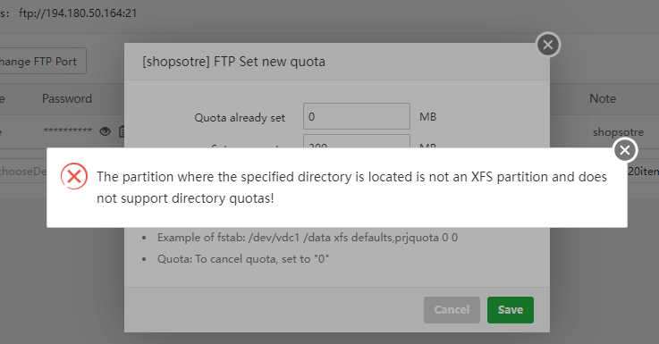 aaP_nowinav282 The partition where the specified directory is located is not an XFS partition and does not support directory quotas! how to fix it ?