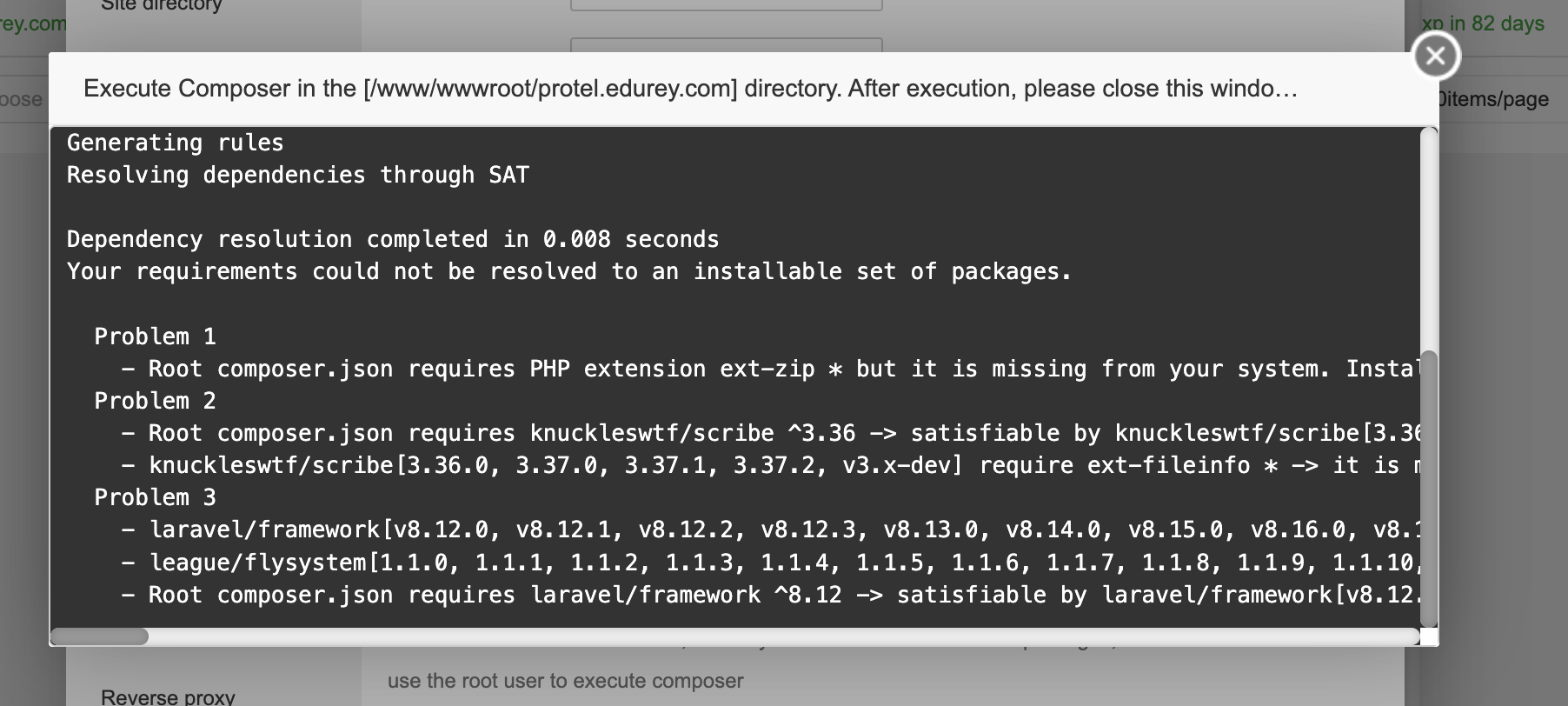 When I run Composer I get the following error. How can I fix it?