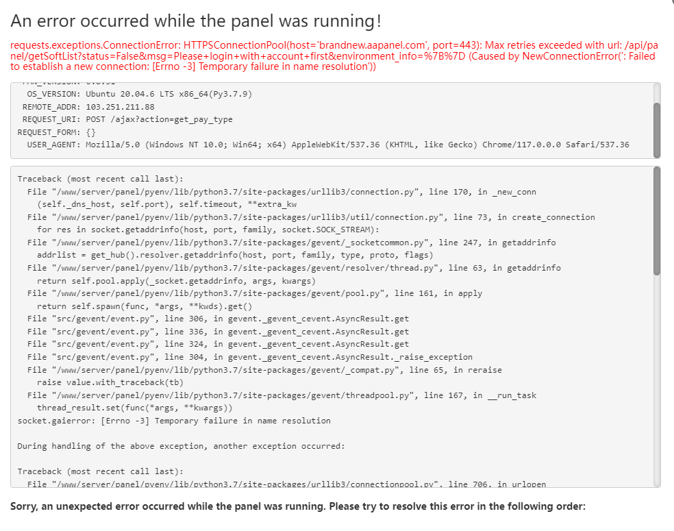 Hello, please check if your server network is normal?
