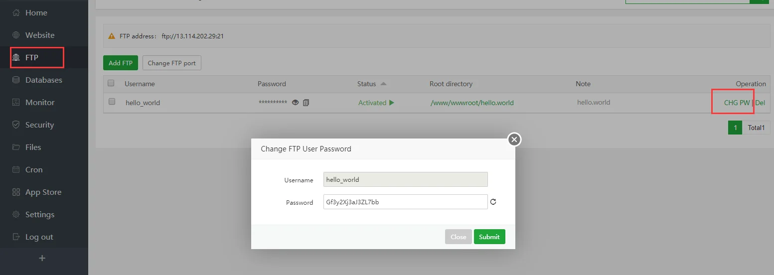 - Change FTP Password