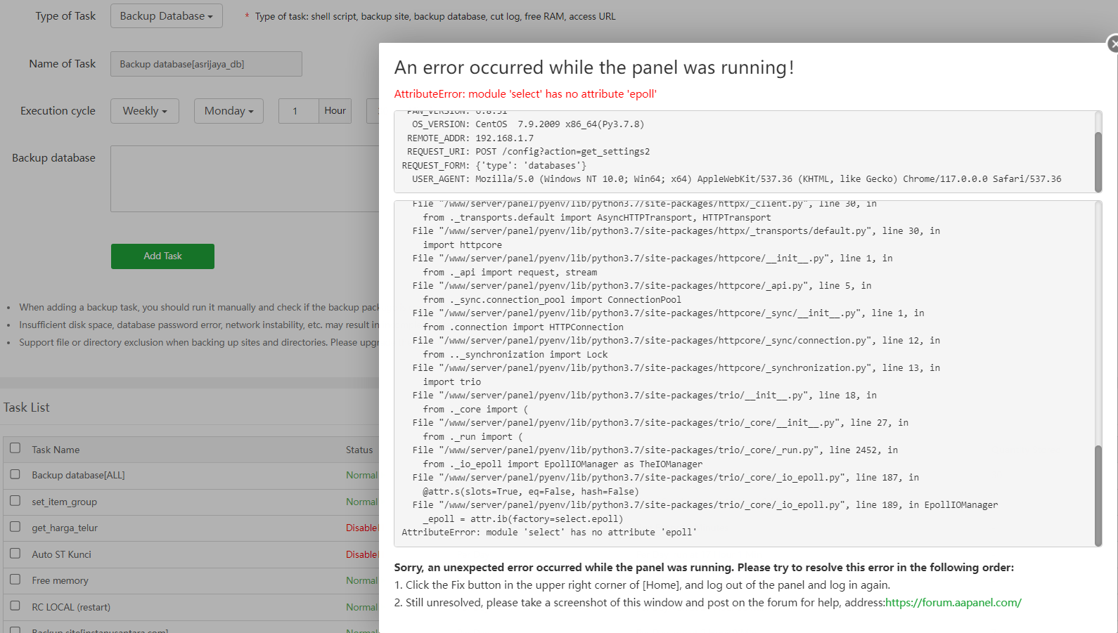 andiafri Why Backup Database and Site warning like this? Google Drive auth working but cannot backingup file via Google Drive He said : AttributeError: module 'select' has no attribute 'epoll'