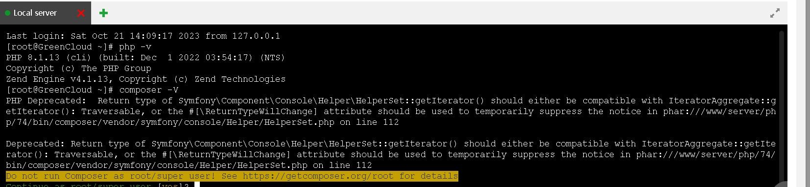PHP Deprecated: Return type of Symfony\Component\Console\Helper\HelperSet::getIterator() should either be compatible with IteratorAggregate::getIterator(): Traversable, or the #[\ReturnTypeWillChange] attribute should be used to temporarily suppress the notice in phar:///www/server/php/74/bin/composer/vendor/symfony/console/Helper/HelperSet.php on line 112