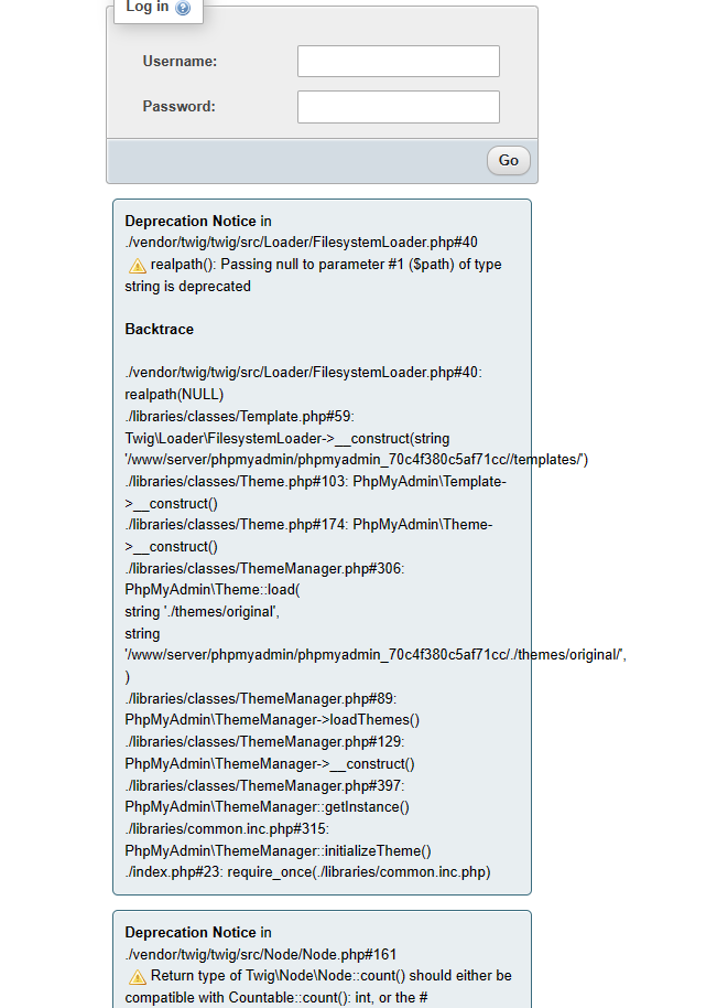 aaPanel_Kern Hello, please check the PHP version of phpmyadmin and try changing to version 7.4 or higher. Is this a solution? aaP_pcdrips
