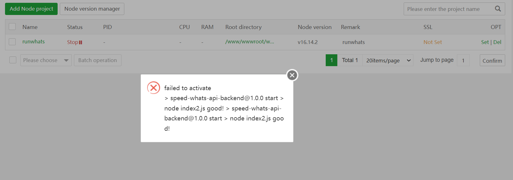 yazan aaPanel_Kern Hello, I've created a node project on the same port in the past, and I've deleted it. I think the deleted project is still working on the same port, but the node project panel in the websites nav bar shows that there are no project created. What is the probelm?
