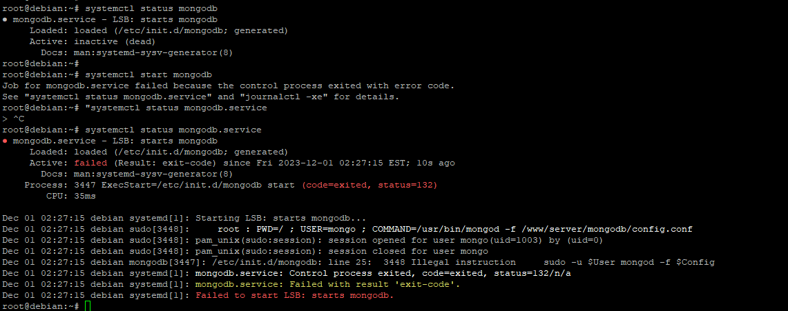 I have updated the software list and then installed mongodb 7. But I am unable to start it from panel as well as from terminal.