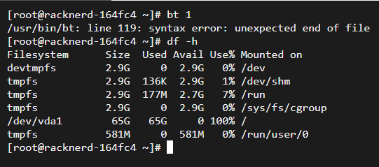 aaP_sawadikakabengka aaPanel_Kern fixed ,but new issues, /dev/vda/1 use100% ,results the aapanel can't work now . how to fix it?