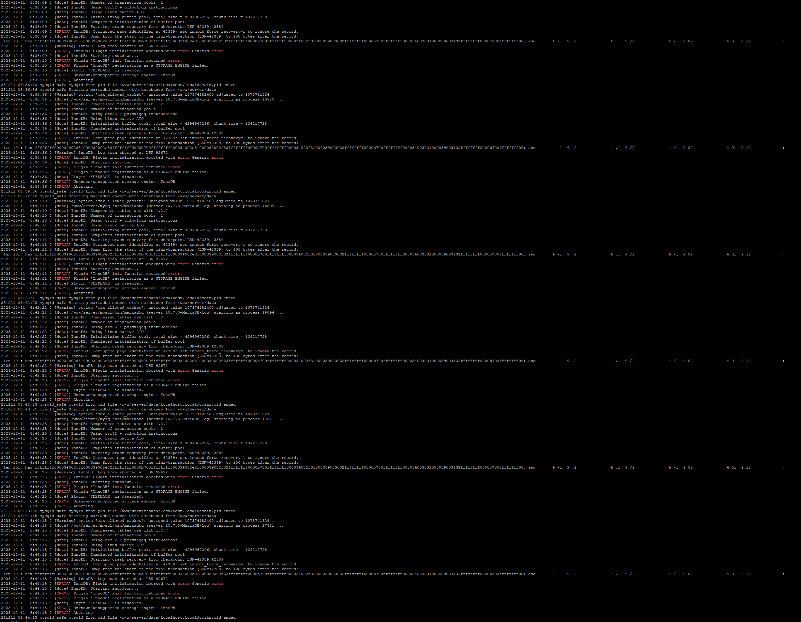 2023-12-11 6:36:36 0 [ERROR] Plugin 'InnoDB' init function returned error.