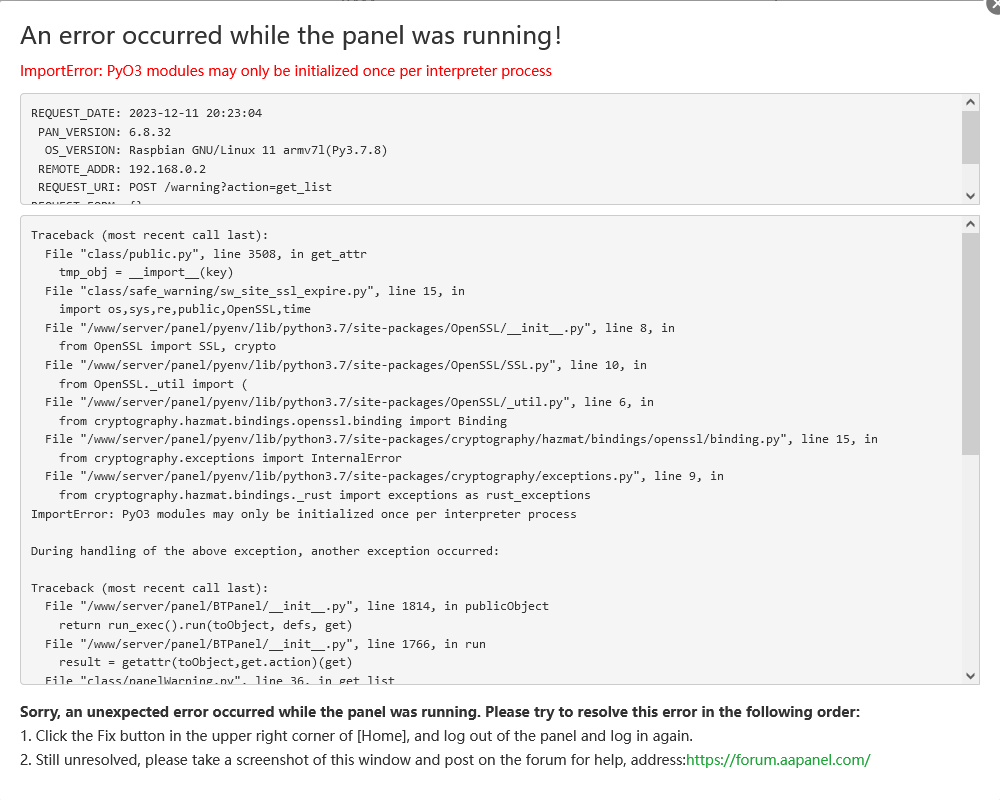 File "/www/server/panel/BTPanel/init.py", line 1814, in publicObject