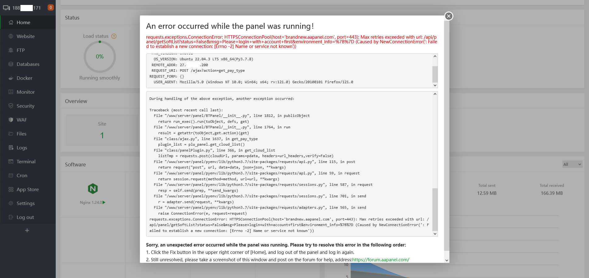 (23) Turn off BasicAuth authentication (16) Repair panel (check for errors and update panel files to the latest version)