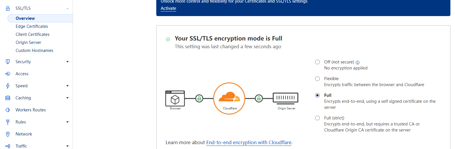 SSL Certificate: I generated a new Origin Server certificate through Cloudflare's SSL/TLS > Origin Server > Create Certificate section.