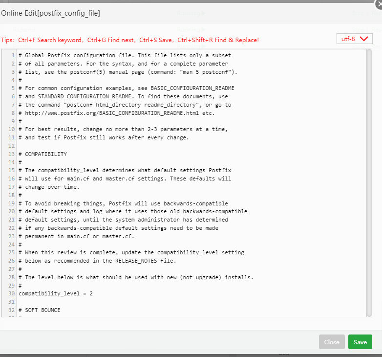 At the same time, check the postfix configuration, which can be viewed in the server status