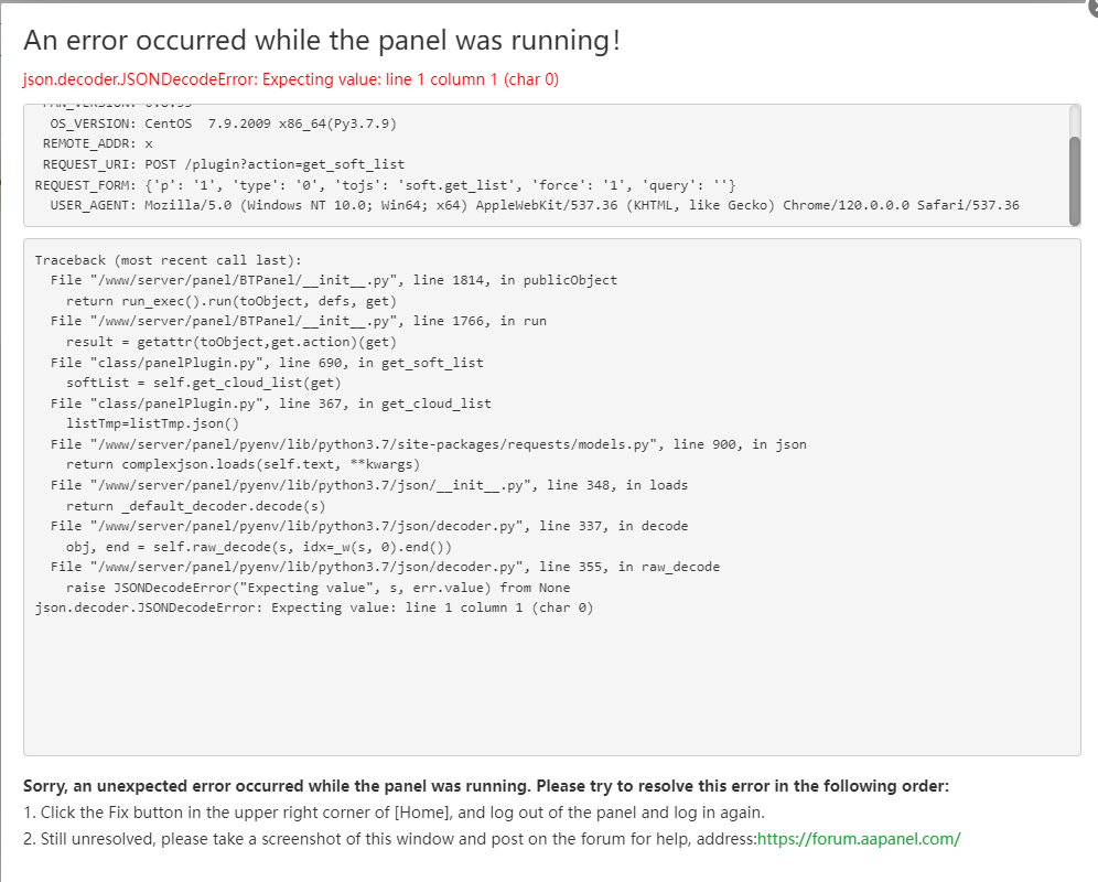 File "/www/server/panel/pyenv/lib/python3.7/site-packages/requests/models.py", line 900, in json