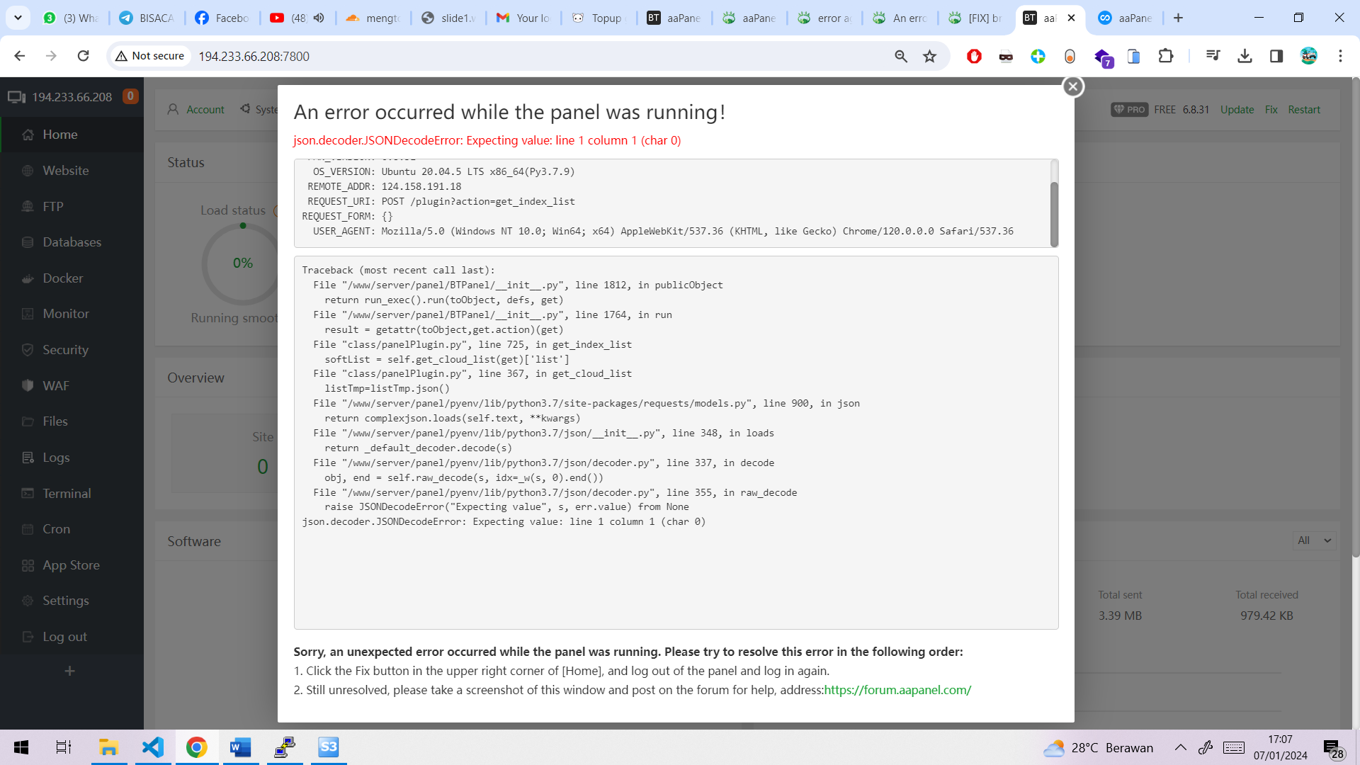 File "/www/server/panel/pyenv/lib/python3.7/json/init.py", line 348, in loads