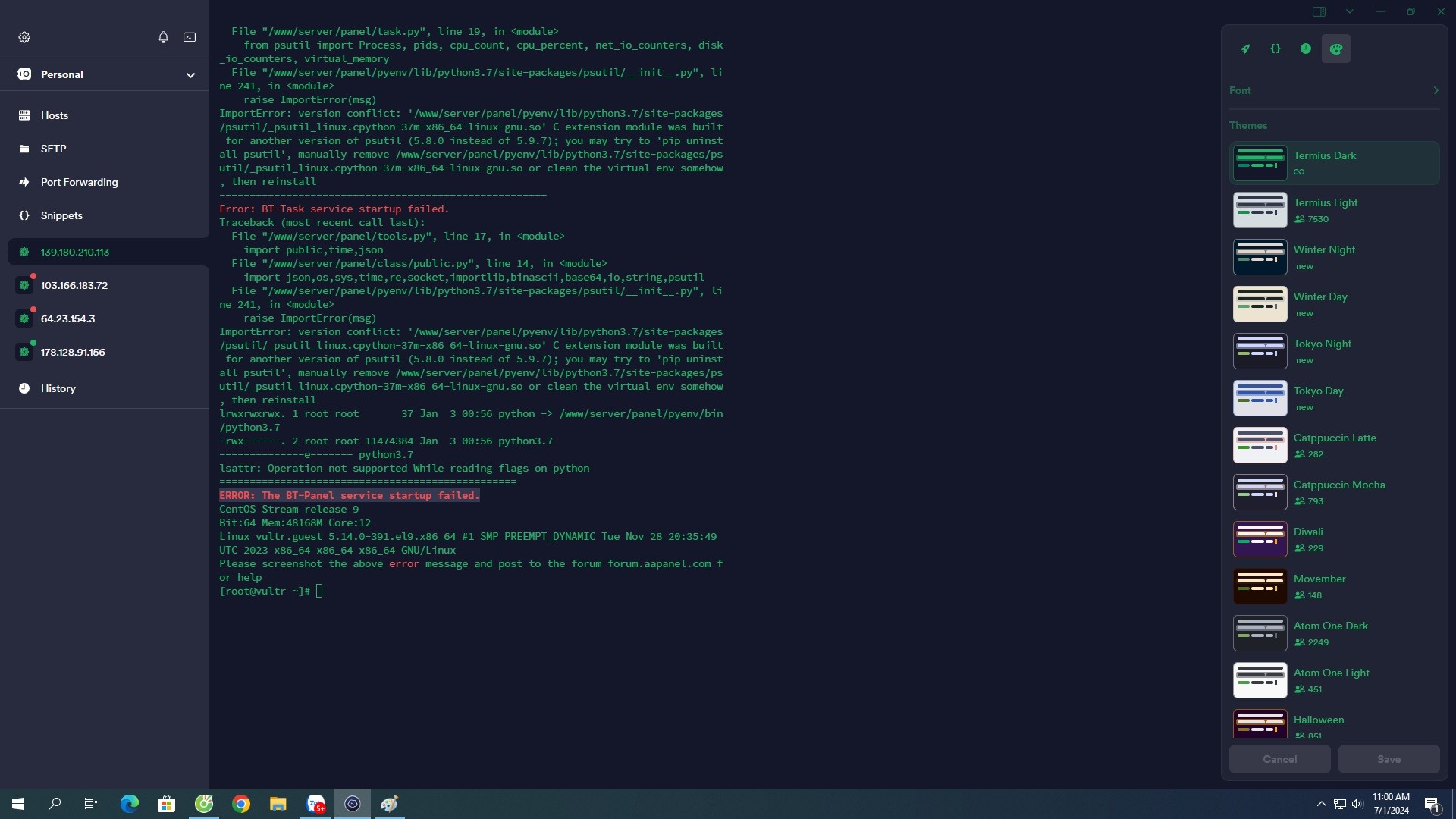 requests.exceptions.ConnectionError: HTTPSConnectionPool(host='brandnew.aapanel.com', port=443): Max retries exceeded with url: /api/panel/getSoftList?status=False&msg=Please+login+with+account+first&environment_info=%7B%7D (Caused by NewConnectionError(': Failed to establish a new connection: [Errno -2] Name or service not known'))