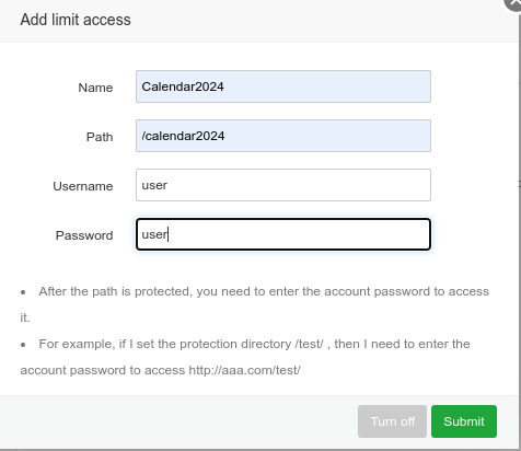 According to the error "...please cancel and then set. Site directory --> Password access" but the "Password access" is not enabled.