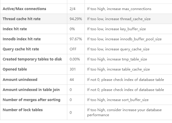 szricsi0917 Hello, I'm trying to turn this on. index hit rate query cache hit rate this always goes 0 even if I input a number There is no such line in the installation file, if I enter it manually and exit, it says an error when restarting mysql.