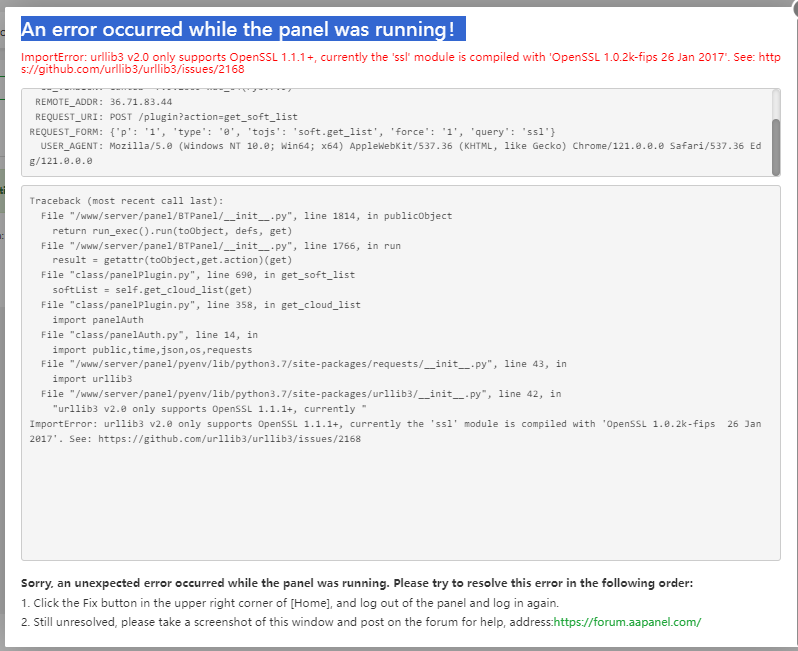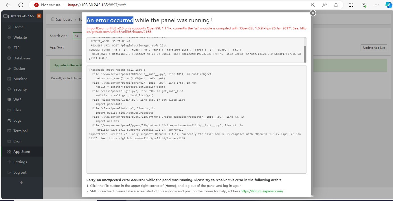 aaPanel_Kern aaP_widodo Use the ssh tool to log in to the server and execute the command btpip install -I requests==2.27 bt 1