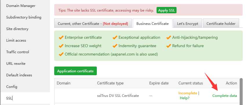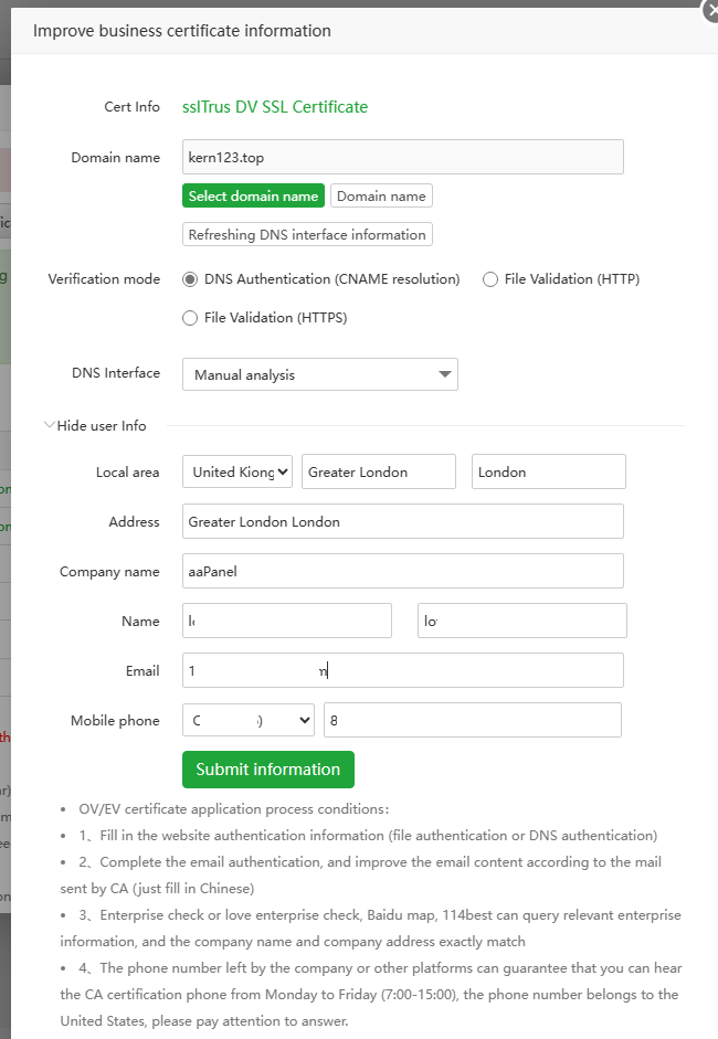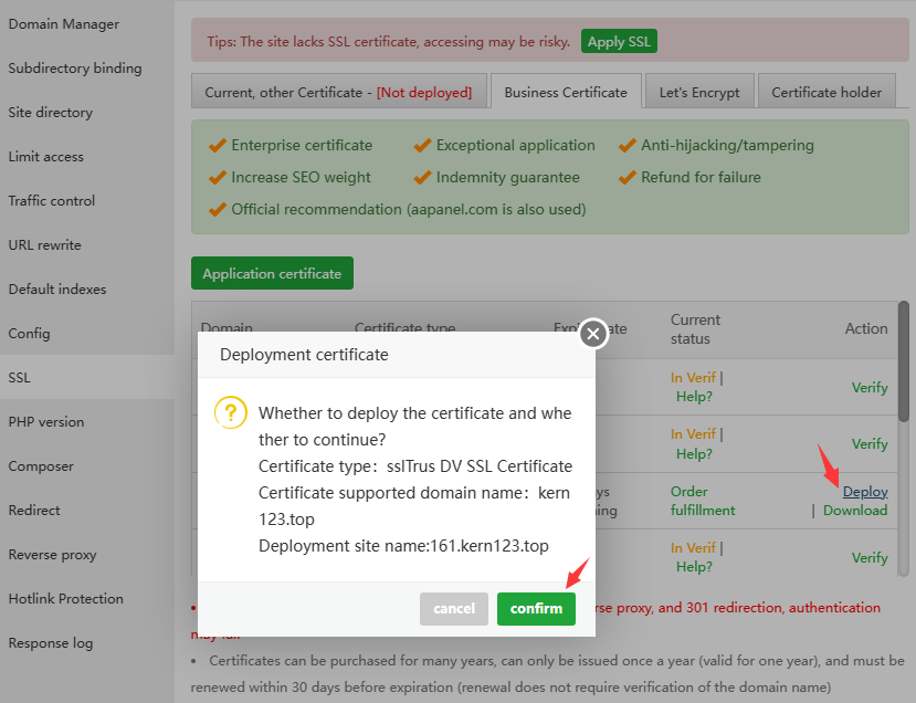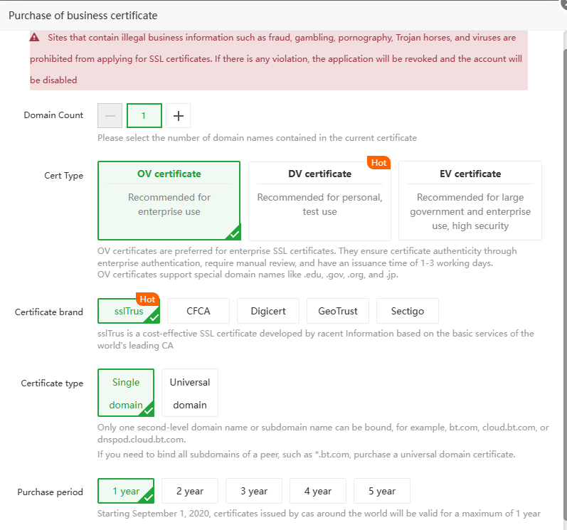 A: Currently, the Business Certificate issued by aaPanel are issued on a yearly basis. When the certificate is close to expiration, an additional month is reserved for renewing the certificate. The actual validity period of the certificate is 3 years.