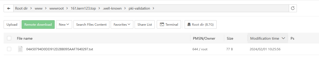 - Make sure that the ".well-known/pki-validation/" directory exists in your website's root directory.