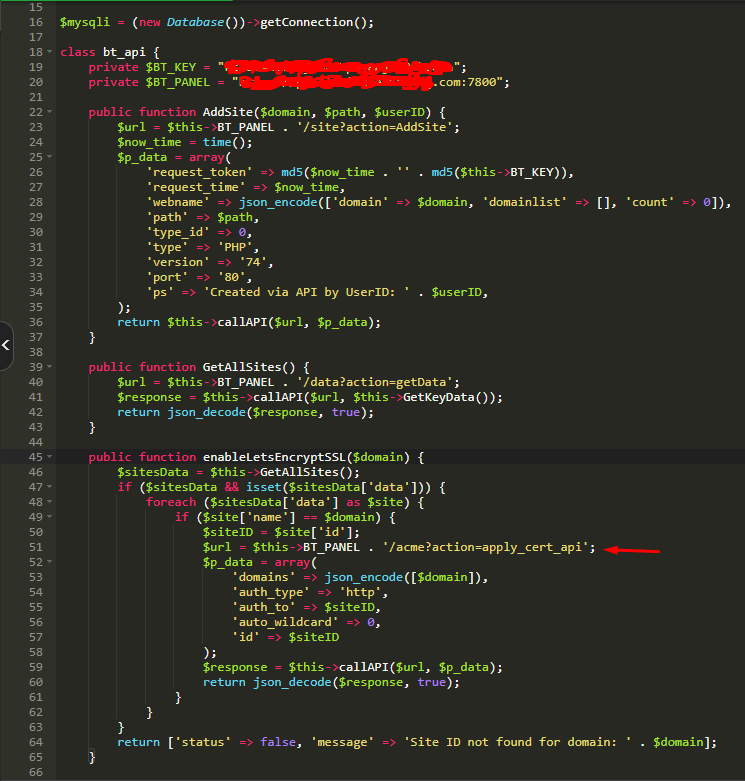 I have also attached screenshots showing the errors found and snippets of the PHP code I am using for this process. It is crucial for us to automate the assignment of SSL certificates for sites managed through aaPanel, and any guidance on how to achieve this would be hugely appreciated.